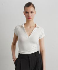 COLLAR RIB HENLEY T-SHIRT_WHITE