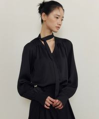 Soft Drape Tie-Neck V-Blouse (black)