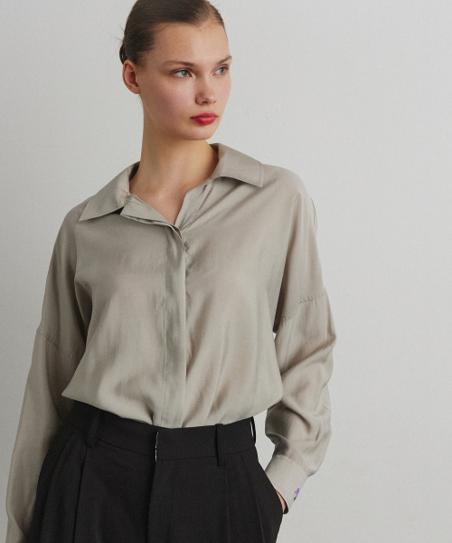 HIDDEN PLACKET SHIRT_BEIGE