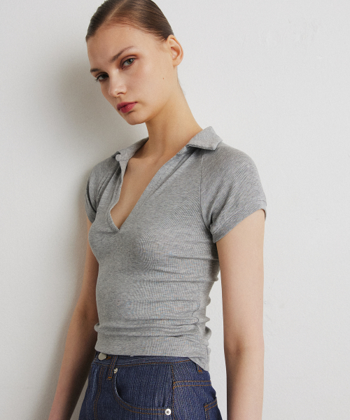 COLLAR RIB HENLEY T-SHIRT_MELANGE