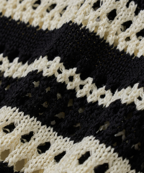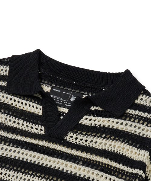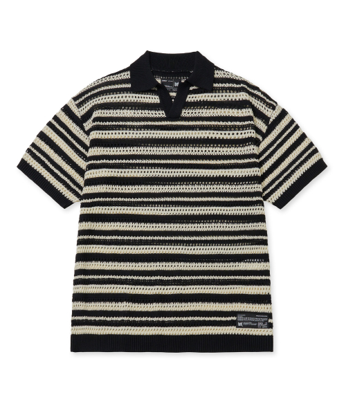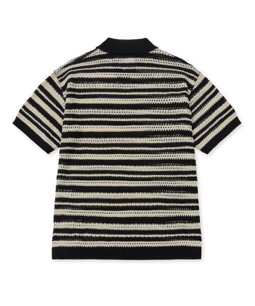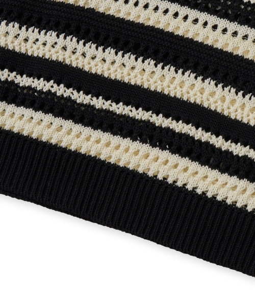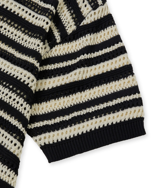 STRIPE PUNCHING COLLAR KNIT - BLACK