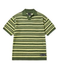 STRIPE PUNCHING COLLAR KNIT - KHAKI