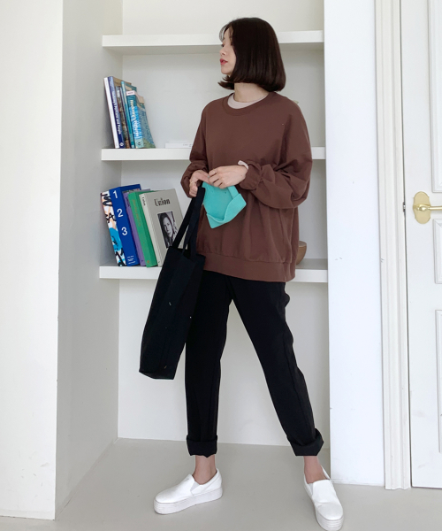 투핀턱 세미 배기 슬랙스