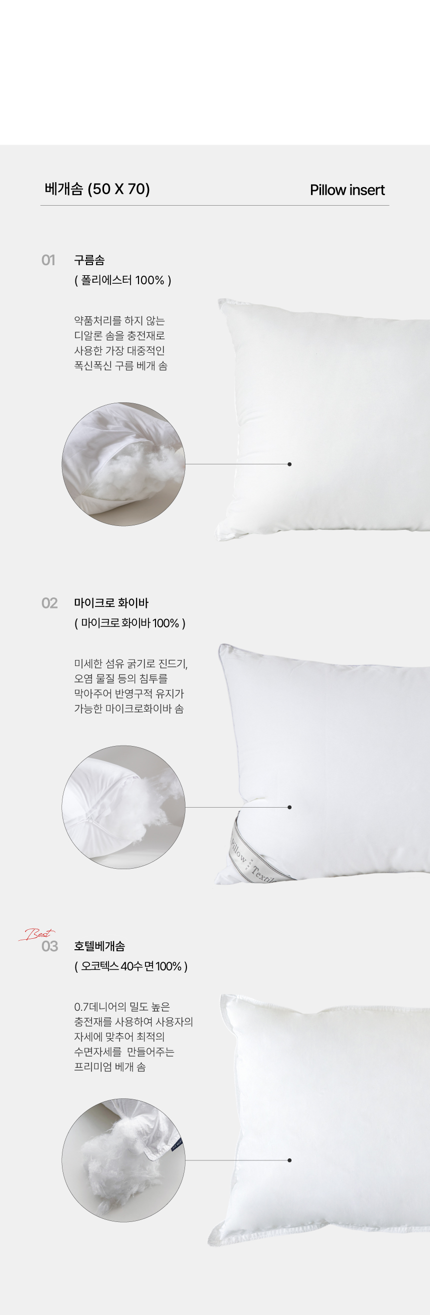 60수 고밀도 순면 베개커버 3colors (50X70)