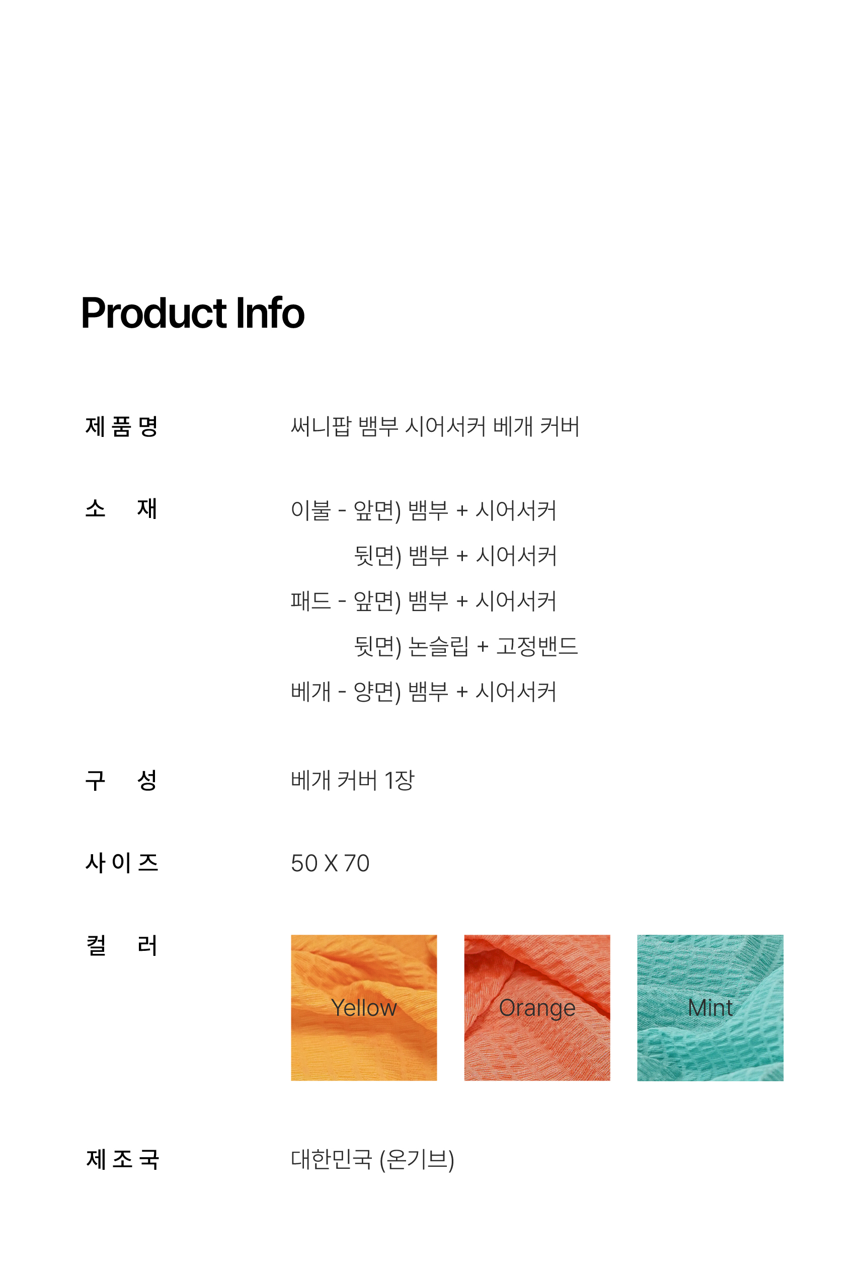 써니팝 뱀부 시어서커 여름 베개커버 3colors