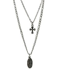 Mary Cross Double Chain Necklace (Black)