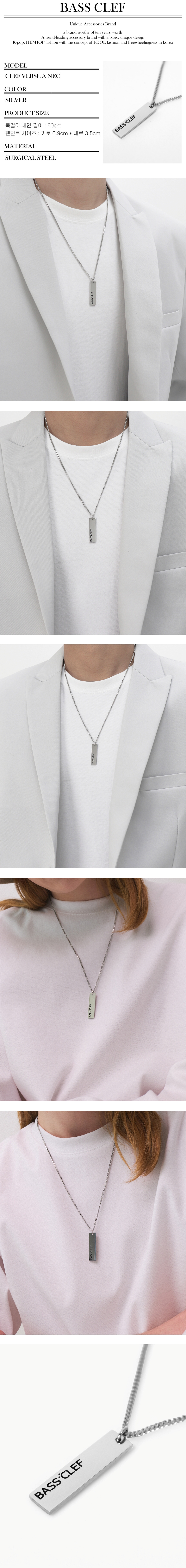 사각 스틱 펜던트 목걸이 써지컬 스틸 CLEF VERSE A NEC