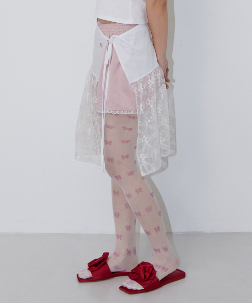 Pink Ribbon Pixel Tights (20D)_WHITE