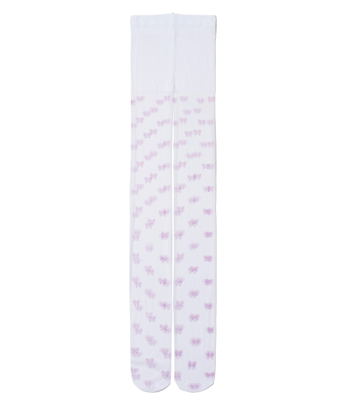 Pink Ribbon Pixel Tights (80D)_WHITE