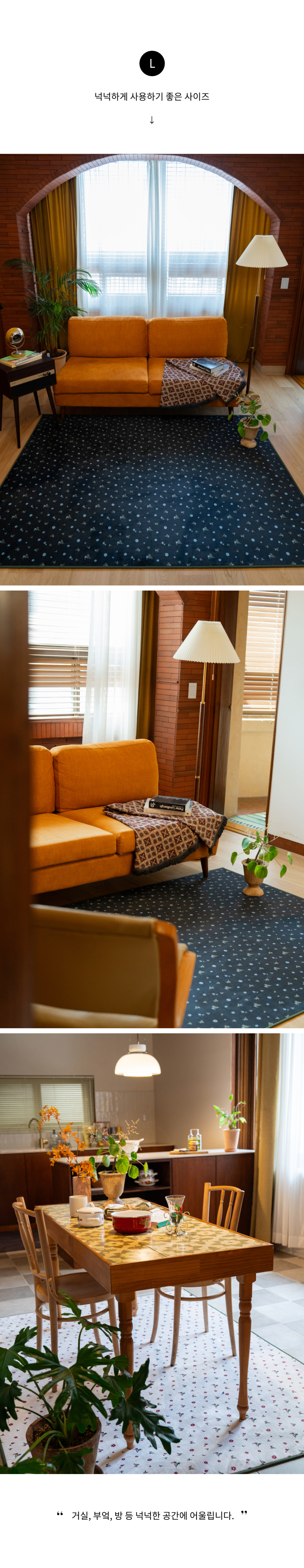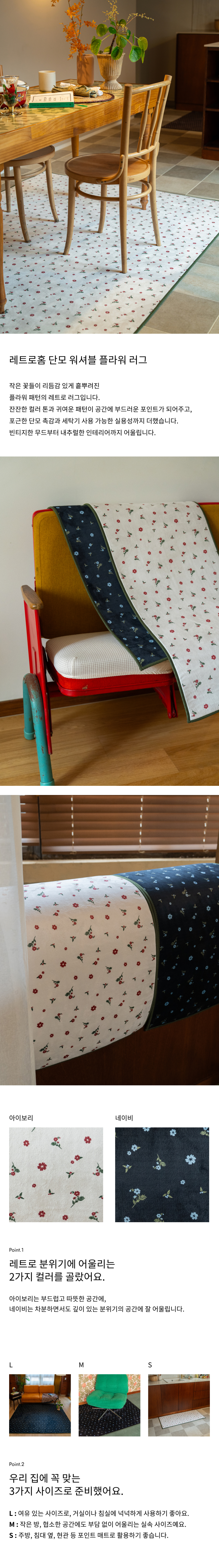 레트로홈 단모 워셔블 플라워 러그 2colors 3sizes