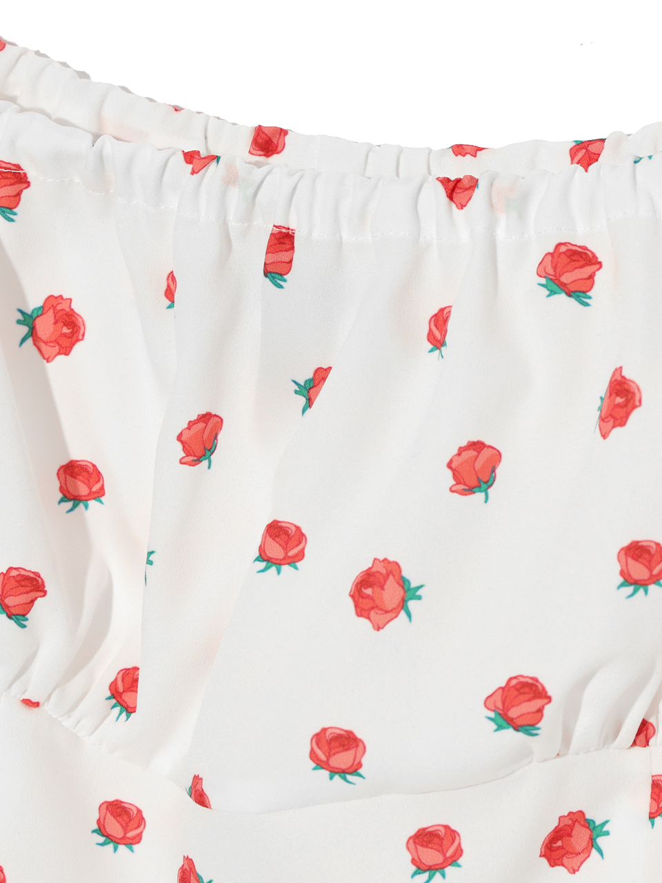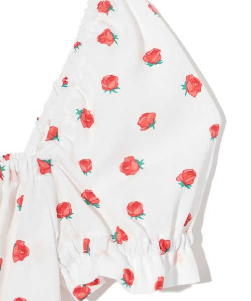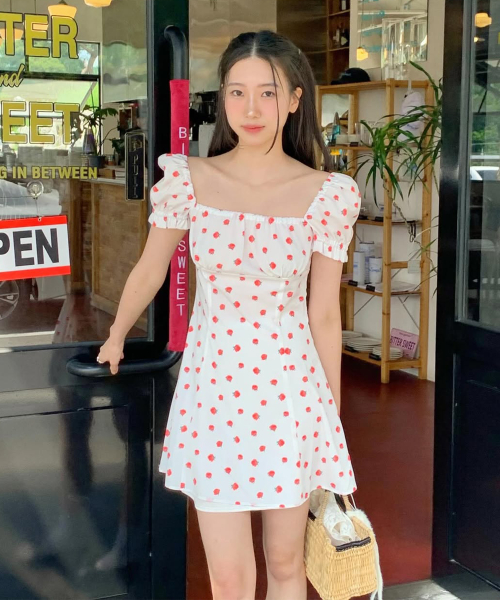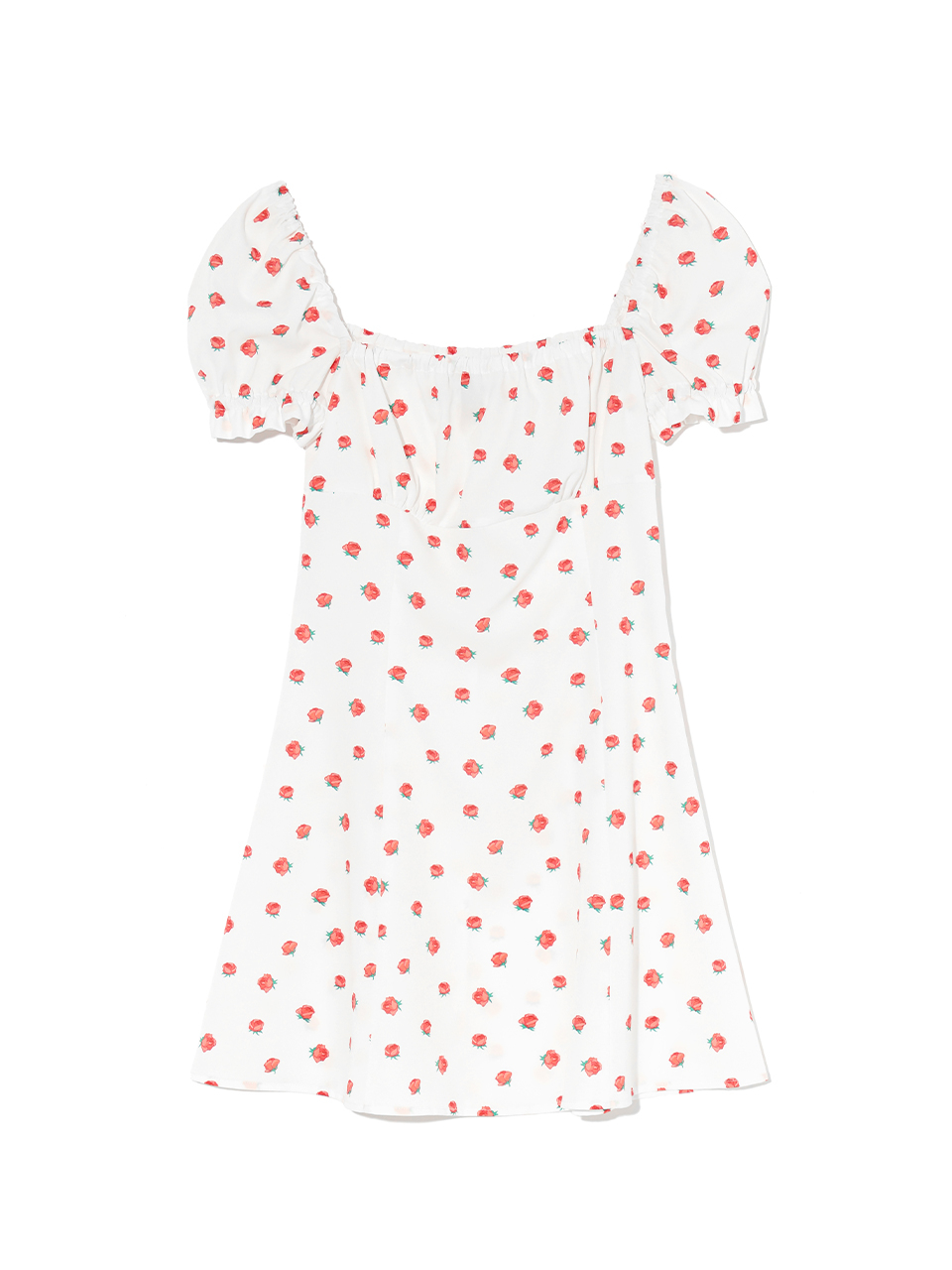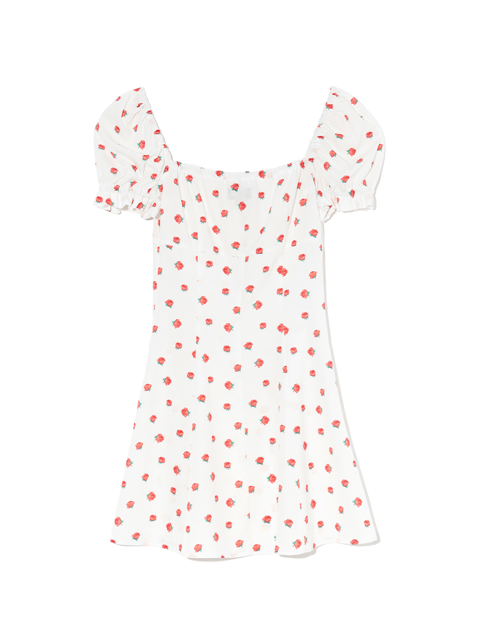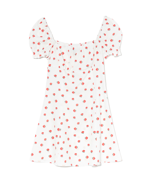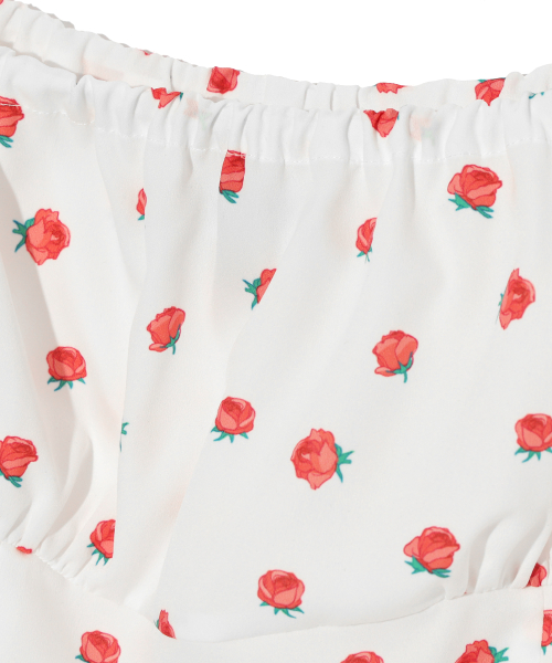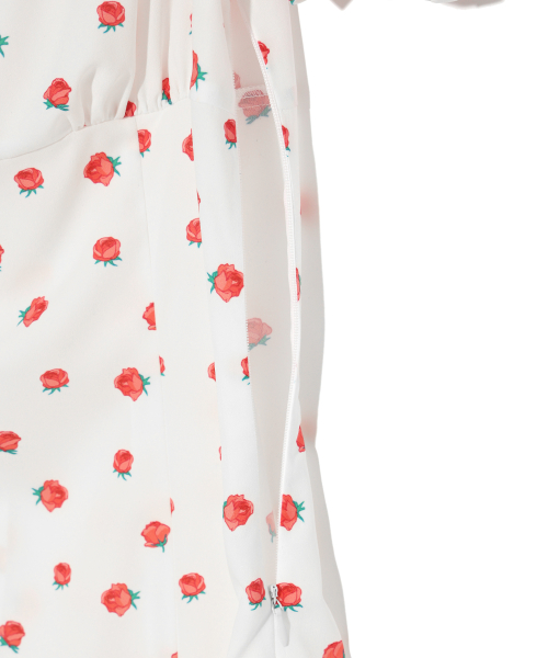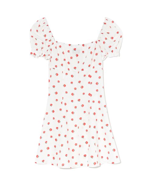 FLOWER PATTERN PUFF DRESS WHITE