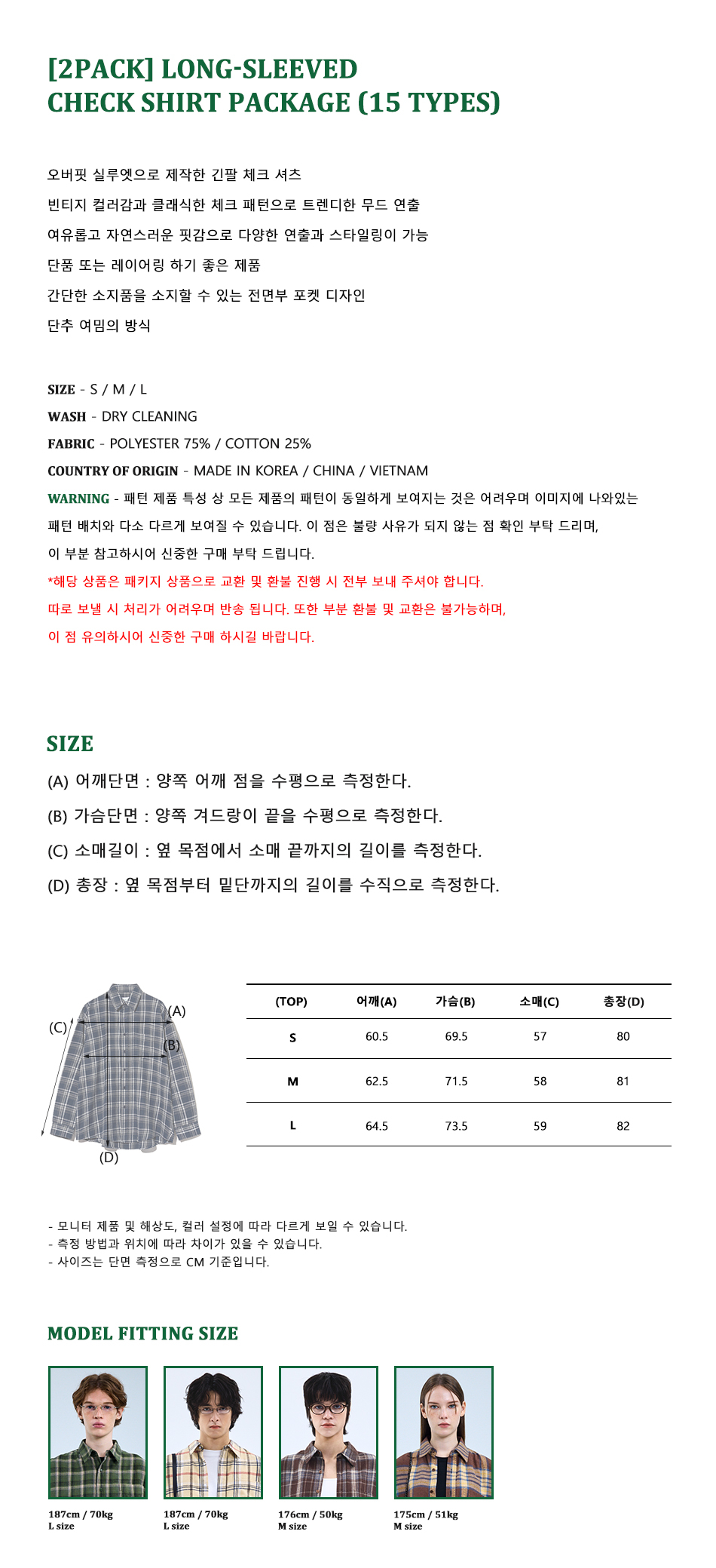 [2PACK] 긴팔 체크 셔츠 패키지 (15종)