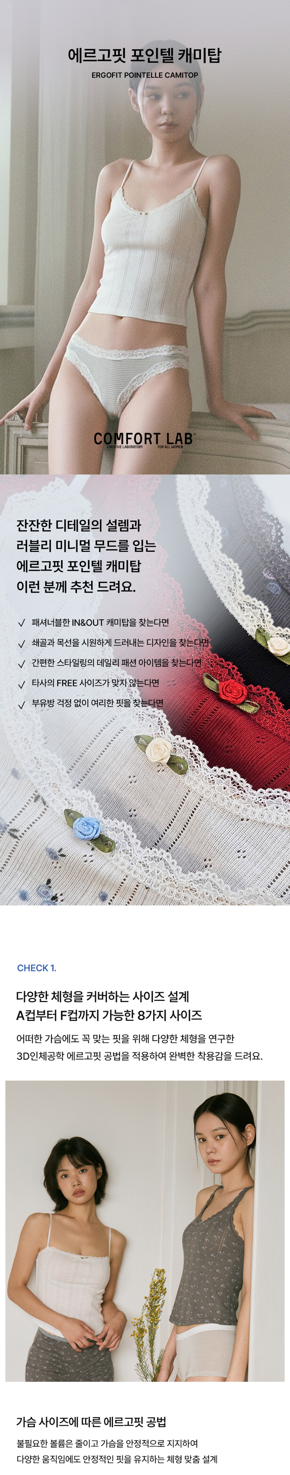 컴포트랩(COMFORTLAB)은 여성이 속옷으로부터 받아온 모든 불편함을 제거하기 위해 노력하며, 더 나은 라이프스타일을 위한 솔루션을 개발합니다. 단 한 명도 실패하지 않는 언더웨어 솔루션 개발을 통해 여성의 라이프스타일에 가치를 더하고자 합니다.