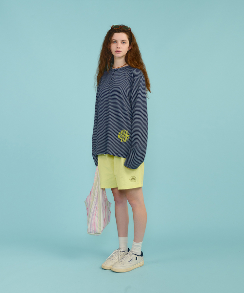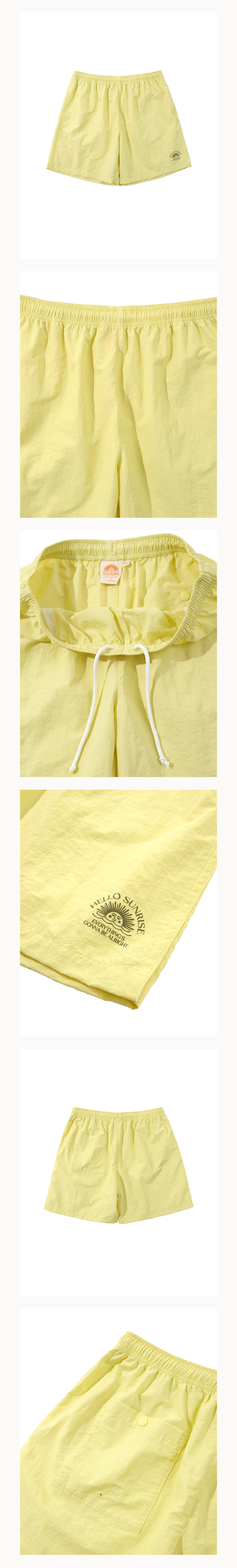 Hello Sunrise 레귤러핏의 중간 기장감의 남녀 공용의 워터숏츠입니다.