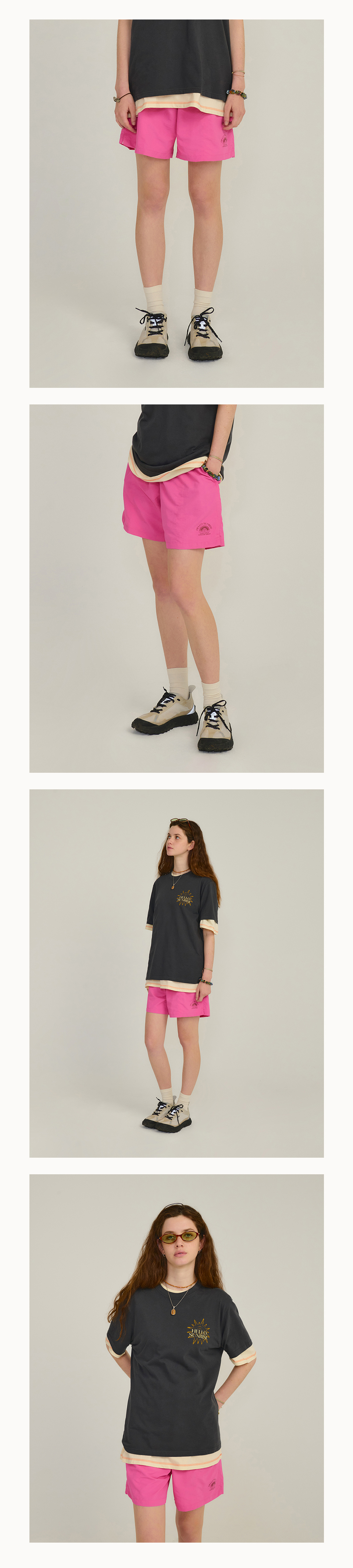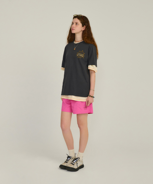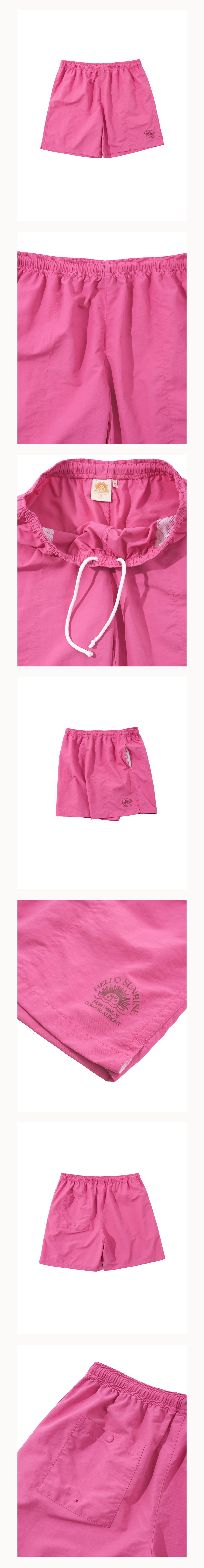 Hello Sunrise 레귤러핏의 중간 기장감의 남녀 공용의 워터숏츠입니다.