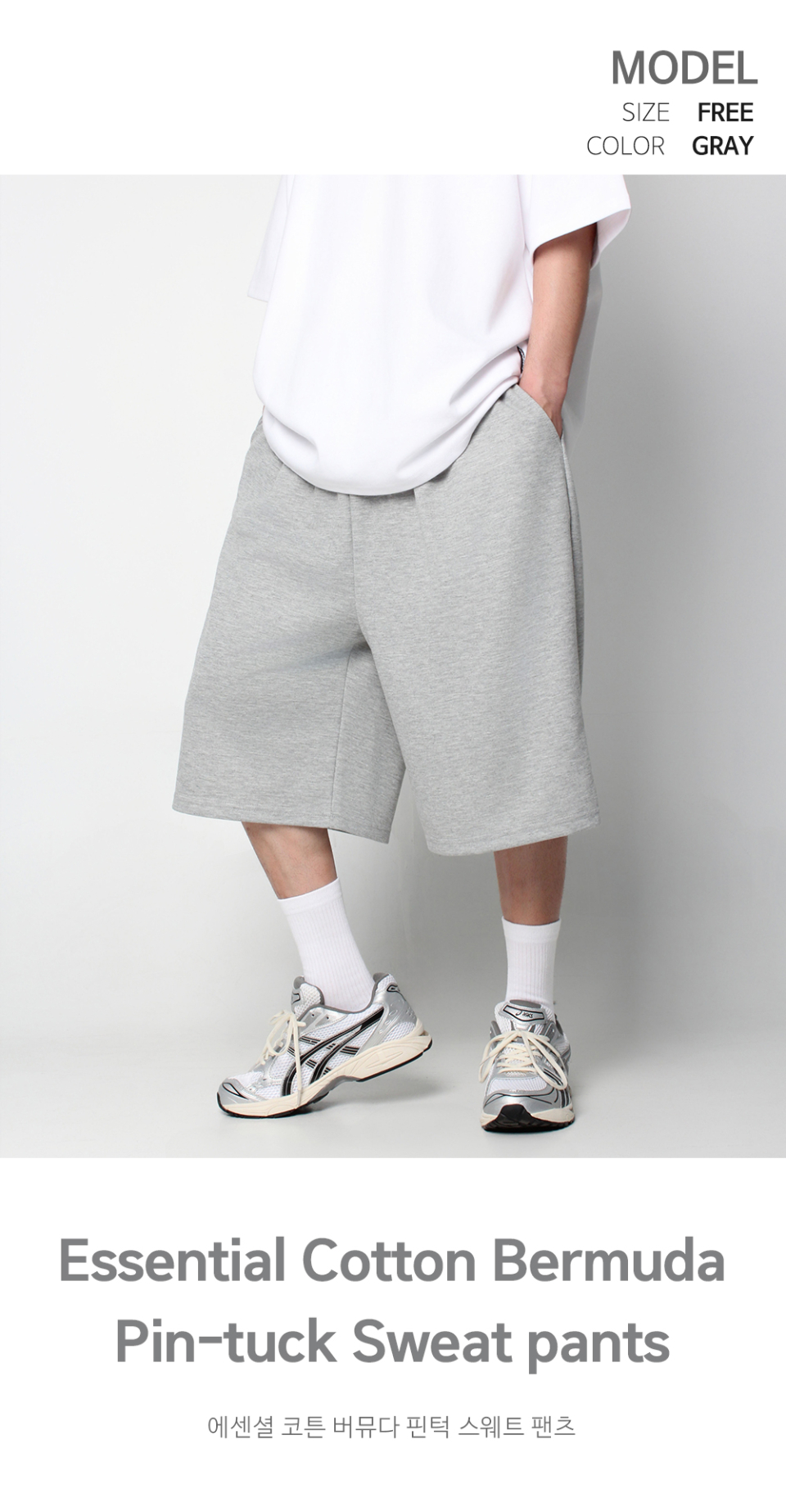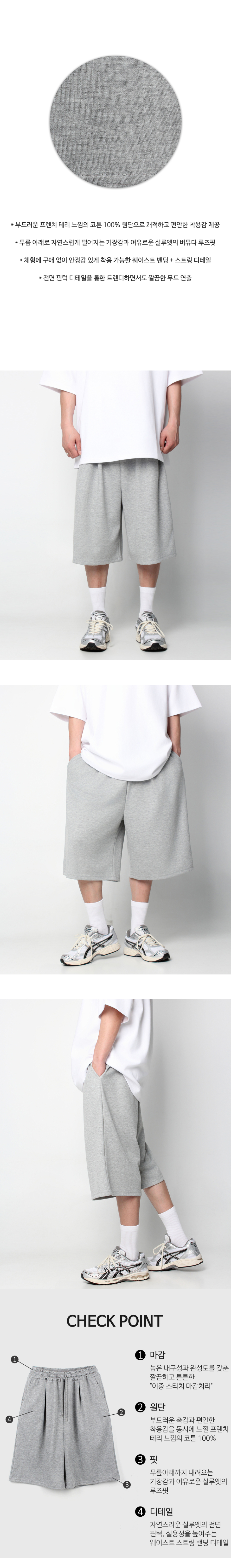 코튼 핀턱 스웨트 팬츠 버뮤다 반바지