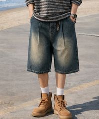원턱 버뮤다 데님 쇼츠 하프 반바지_[빈티지블루]