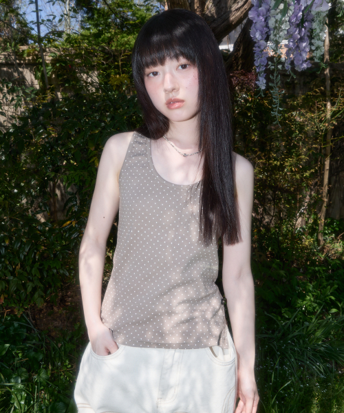 도트 버튼 슬리브리스 (BROWN) F25QB130