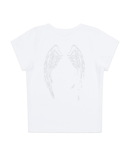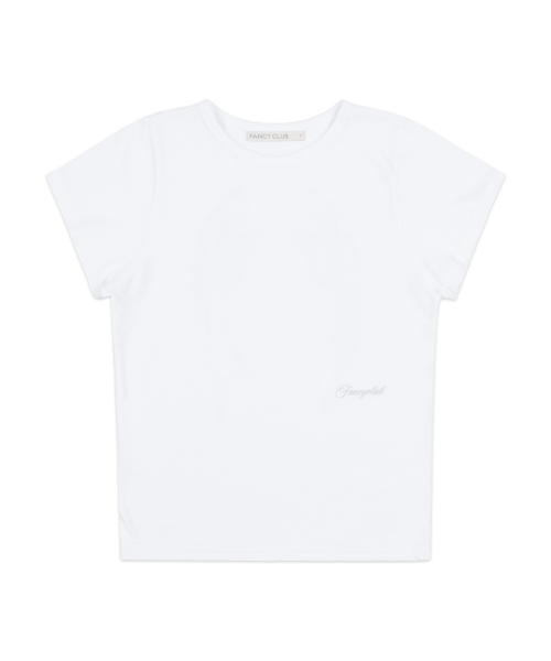 BIG RIBBON APPLIQUE BASIC FIT T SHIRT WHITE