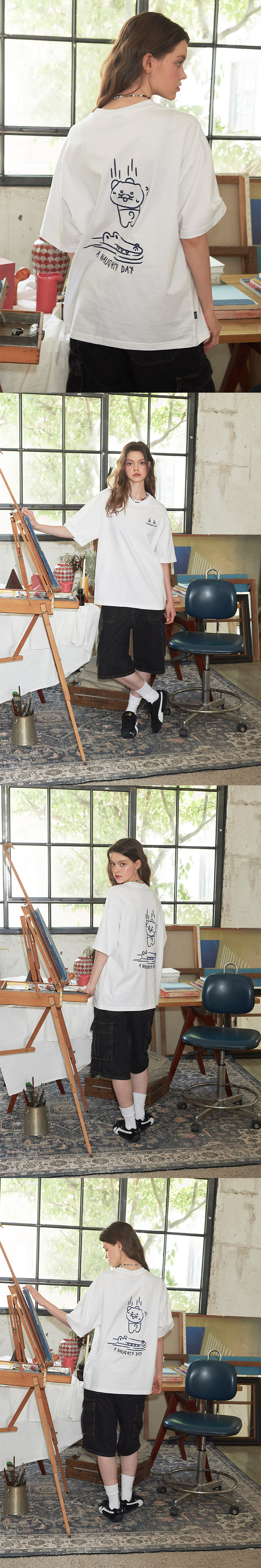 여유로운 품과 드롭숄더 패턴으로 제작되어 오버핏으로 연출 가능한 남녀 공용 아이템입니다