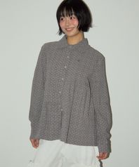 도트 언발란스 프릴 레이어드 러블리 긴팔 블라우스 셔츠 [그레이]