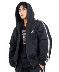 트랙라인 오버핏 후드 집업 블랙