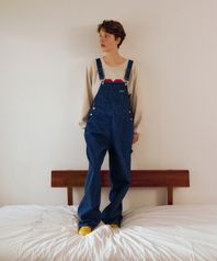 Pinstripe Denim Overall Pants (Deep blue)