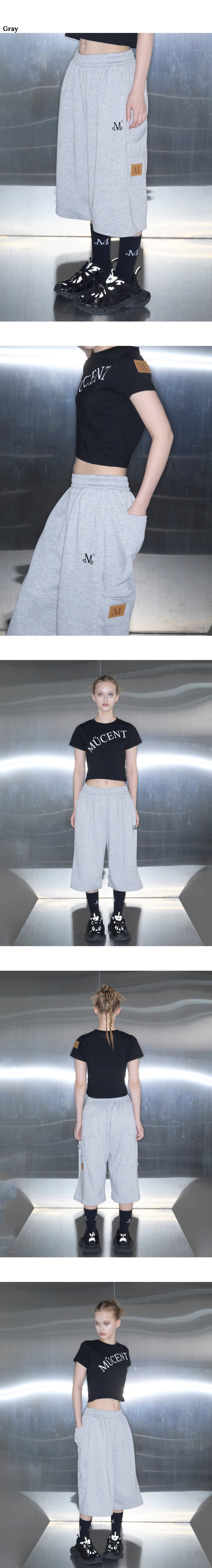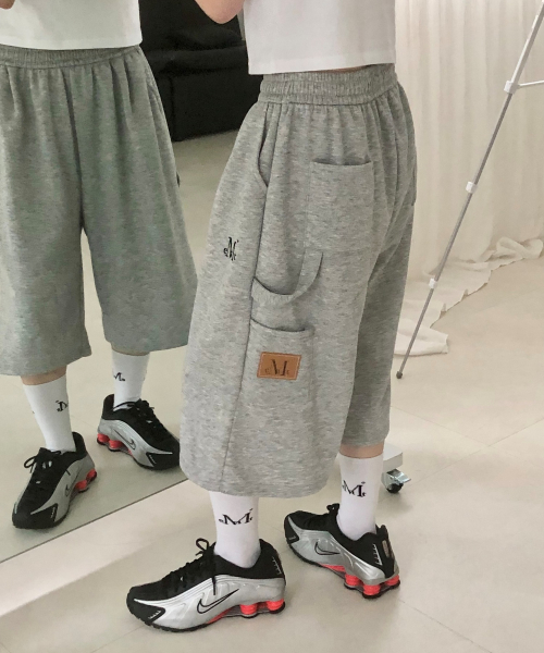 핀턱 카펜터 버뮤다 스웨트 팬츠 그레이 YP-501