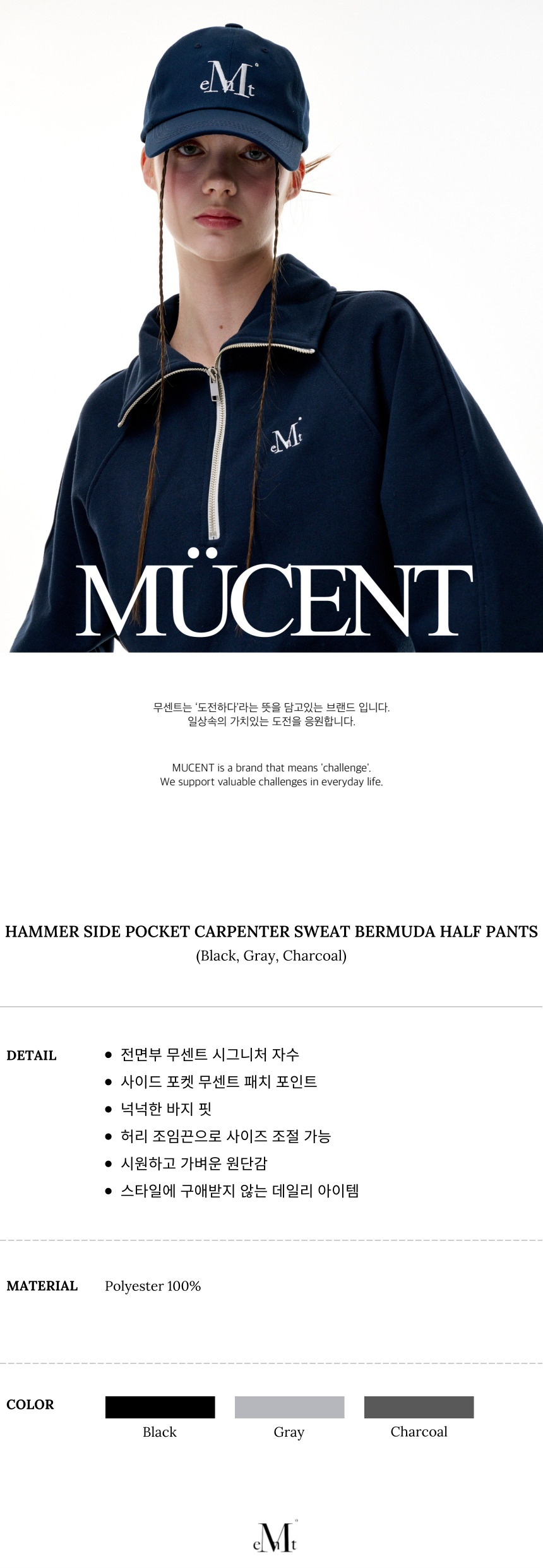 해머 사이드 포켓 카펜터 스웻 버뮤다 팬츠 남녀공용 (3컬러)
