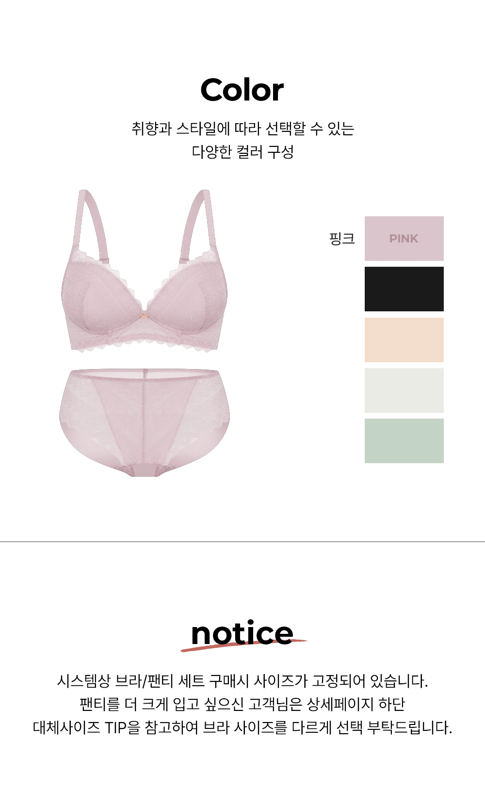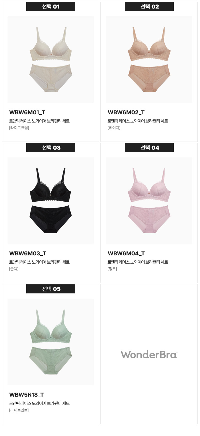 로맨틱 레이스 노와이어 브라팬티 세트 (5Colors)