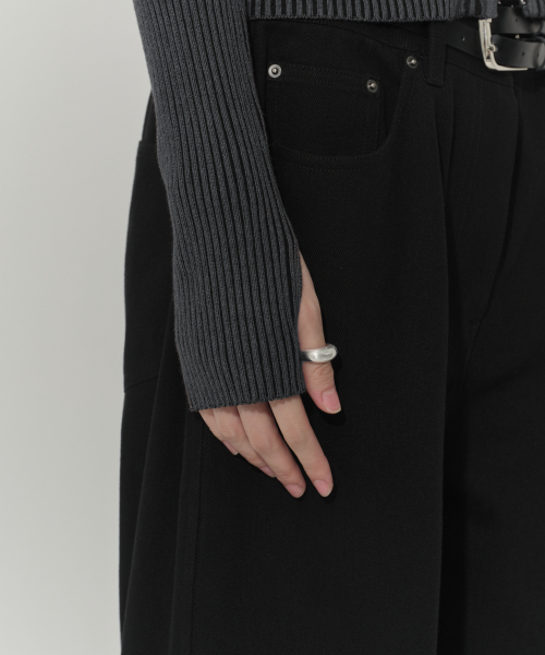 우먼즈 피그먼트 리브드 슬림 스쿱 넥 긴소매 티셔츠 [차콜 그레이]