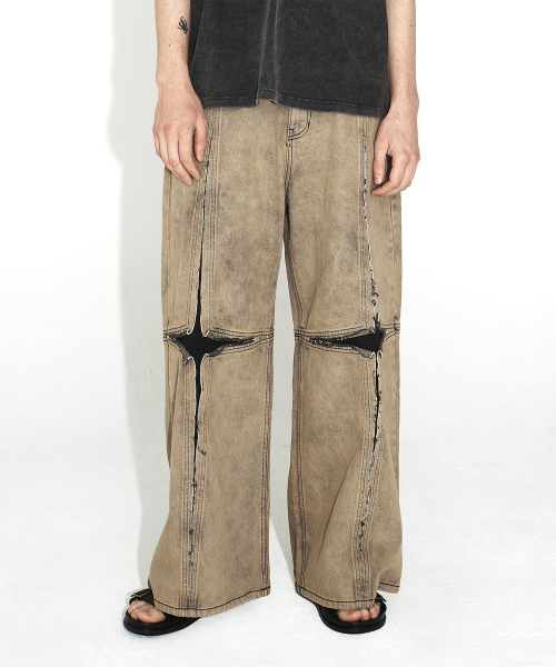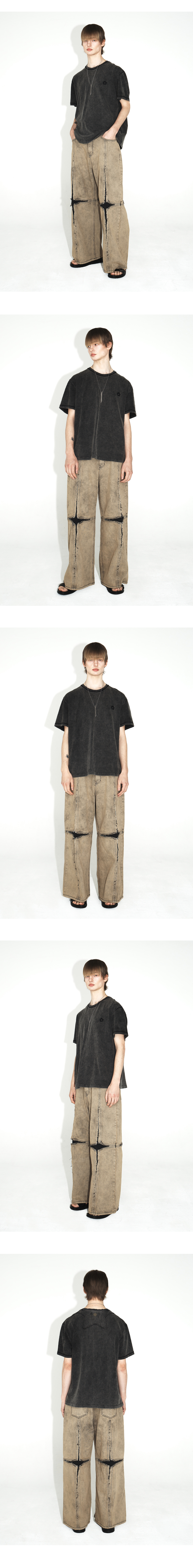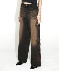 무궁 아플리케 워시드 데님 팬츠_블랙