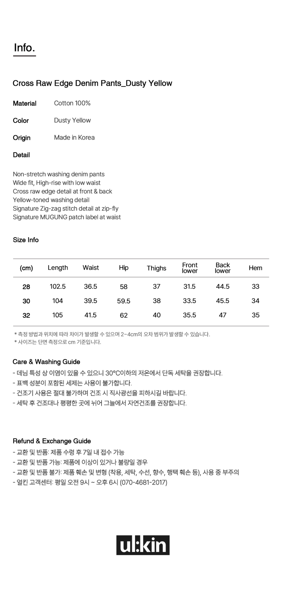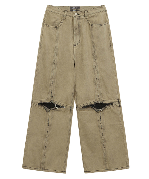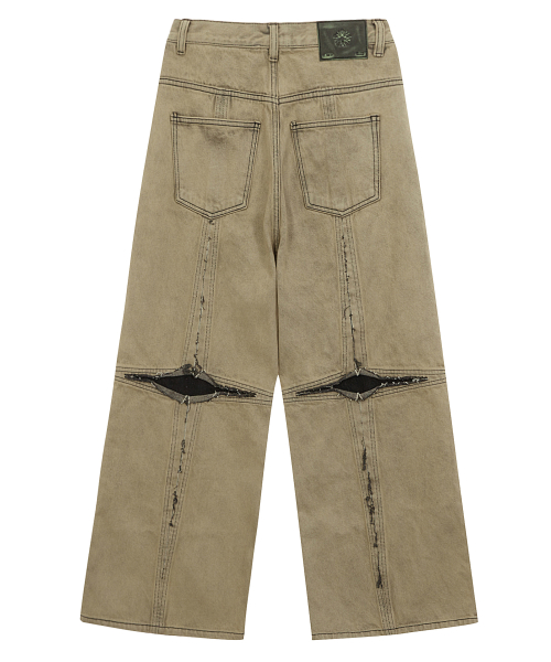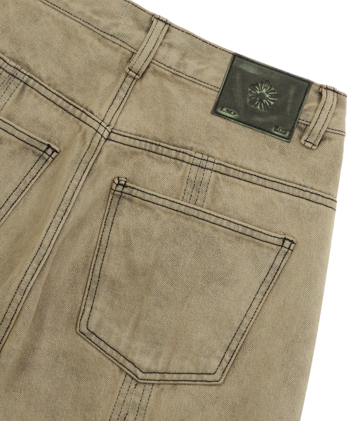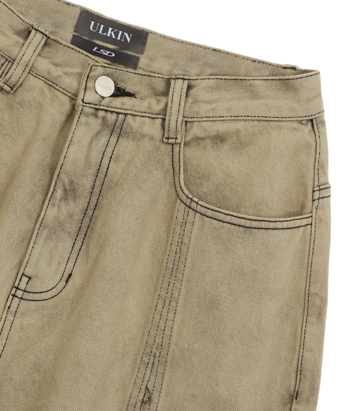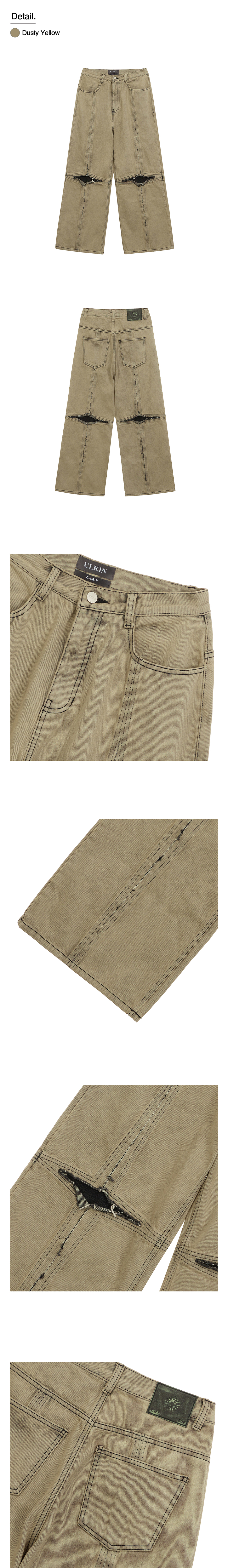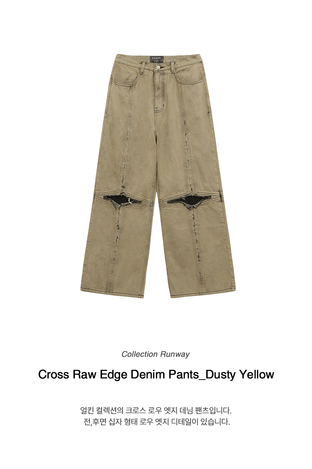 [런웨이] 크로스 로우 엣지 데님 팬츠_더스티 옐로우