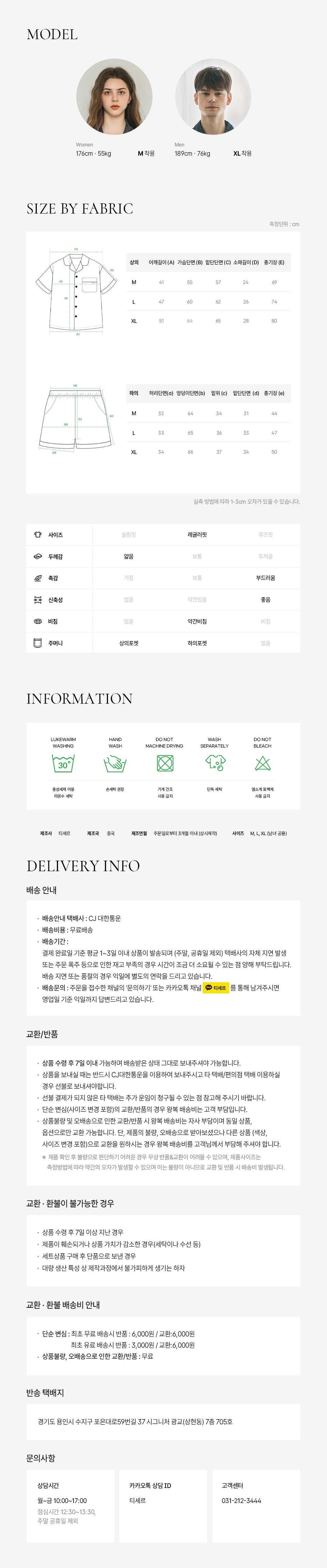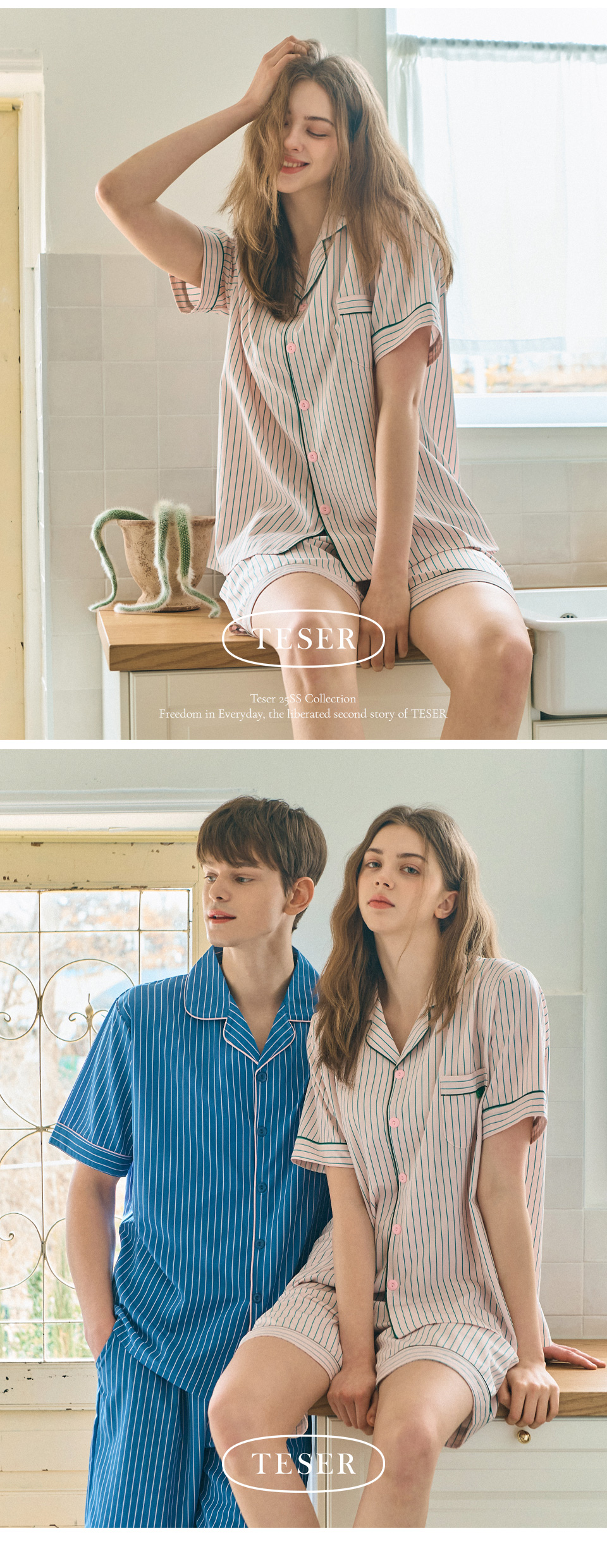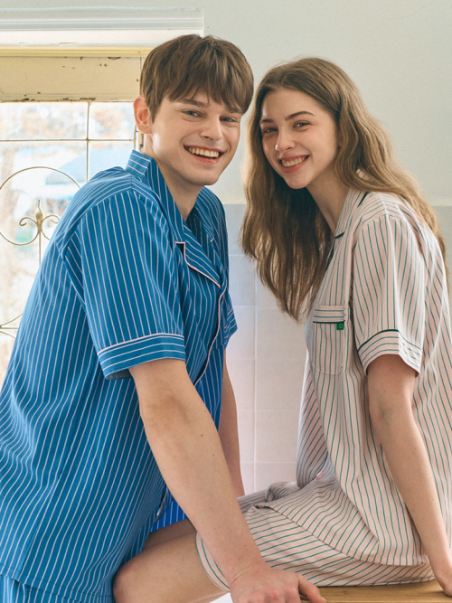 실크핏 에센셜 반팔 커플 잠옷 세트