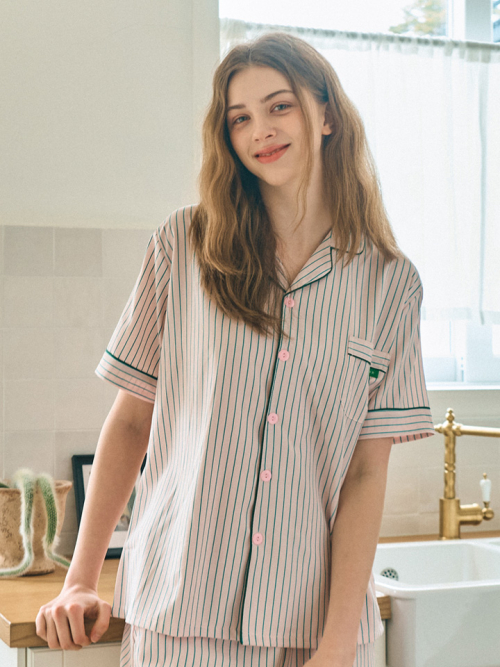 [uni] 아모레 베이비핑크 실크스킨 반팔 잠옷 세트
