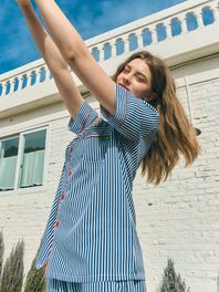 [uni] 마린 네이비 실크스킨 반팔 잠옷 세트