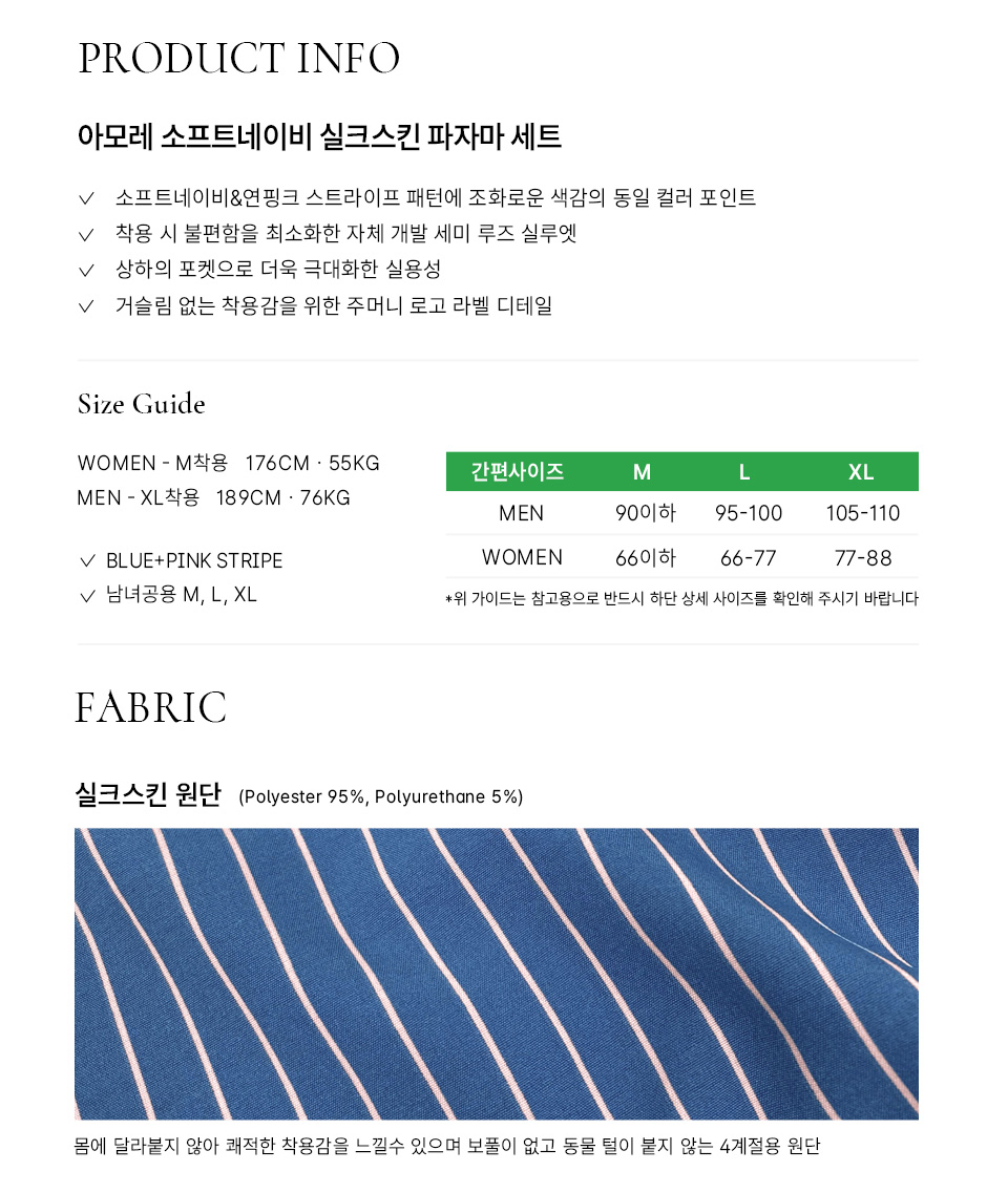 [uni] 아모레 소프트네이비 실크스킨 반팔 잠옷 세트