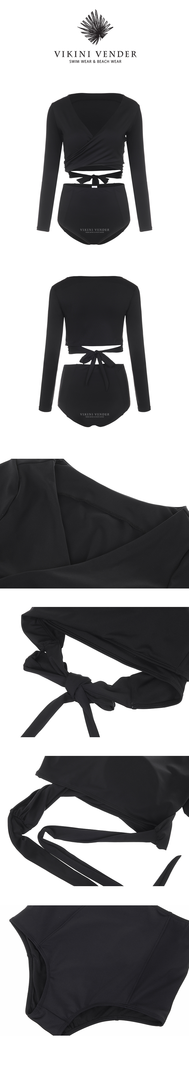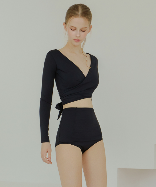 크로스 랩 롱슬리브 하이웨스트 비키니- Black