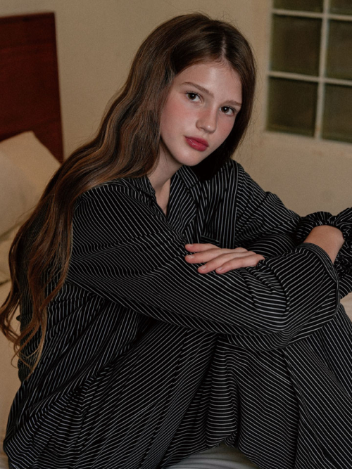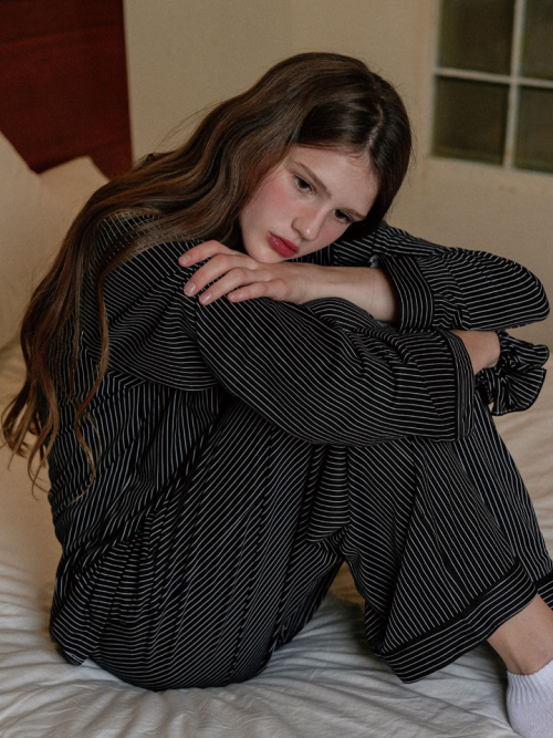 [uni] 로얄 스트라이프 피치기모 긴팔 잠옷 세트