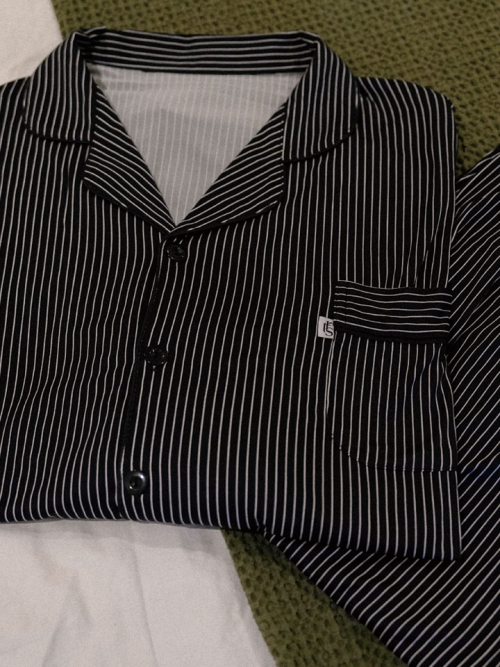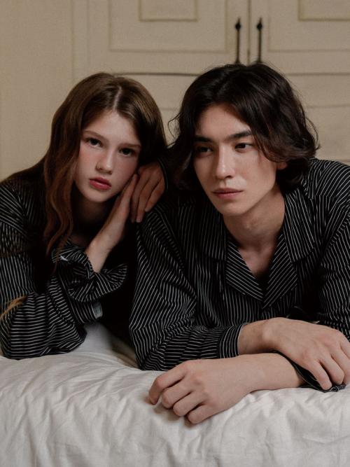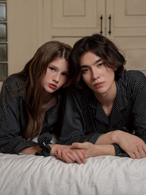 실크핏 모던 블랙 긴팔 커플 잠옷 세트