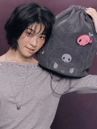 Denim String Backpack Kuromi Washed Charcoal