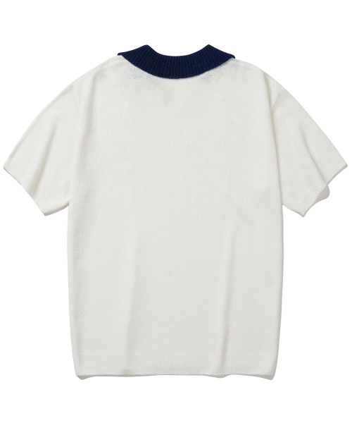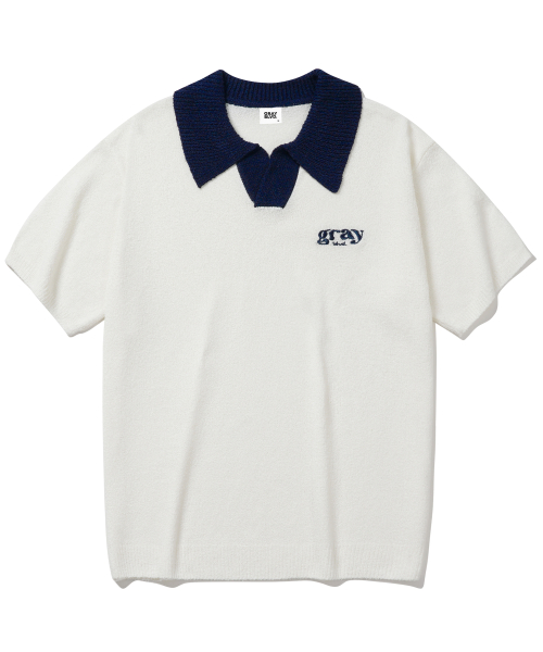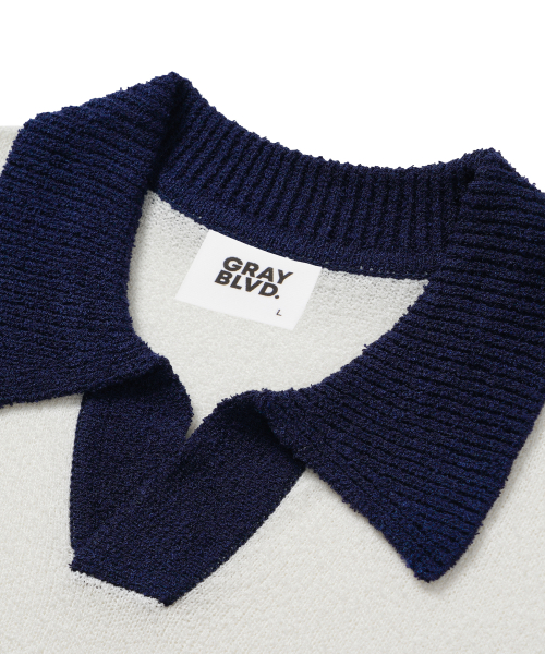 글로우 오픈 카라 니트 반팔 GKBST32 (NAVY)