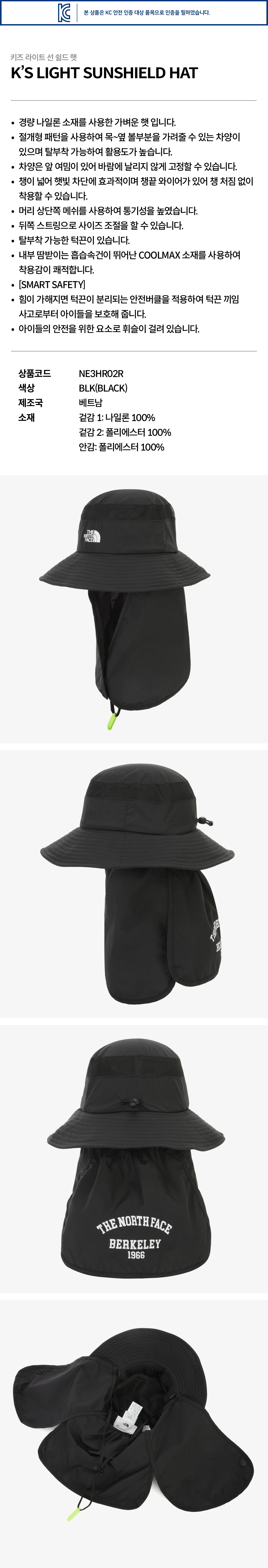 키즈 라이트 선 쉴드 햇 NE3HR02R_BLK