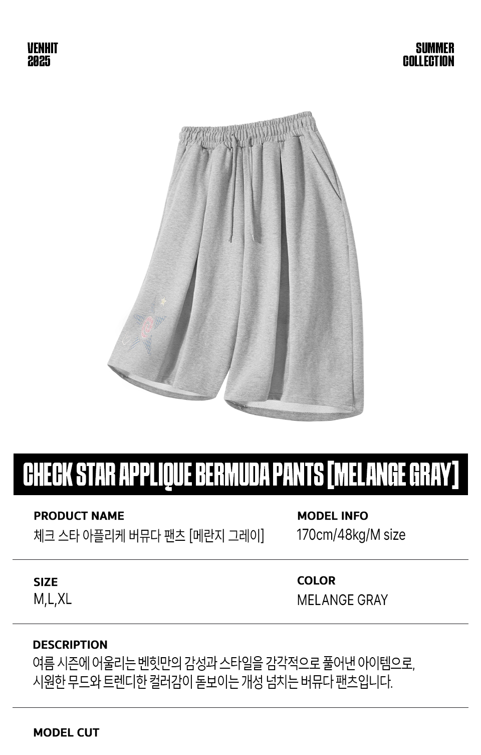 체크 스타 아플리케 버뮤다 팬츠[그레이]