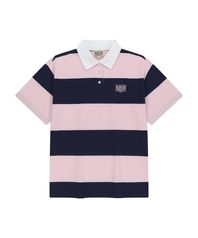SMALL CLASSIC LOGO RUGBY STRIPE OVERSIZED COLLAR TEE pink