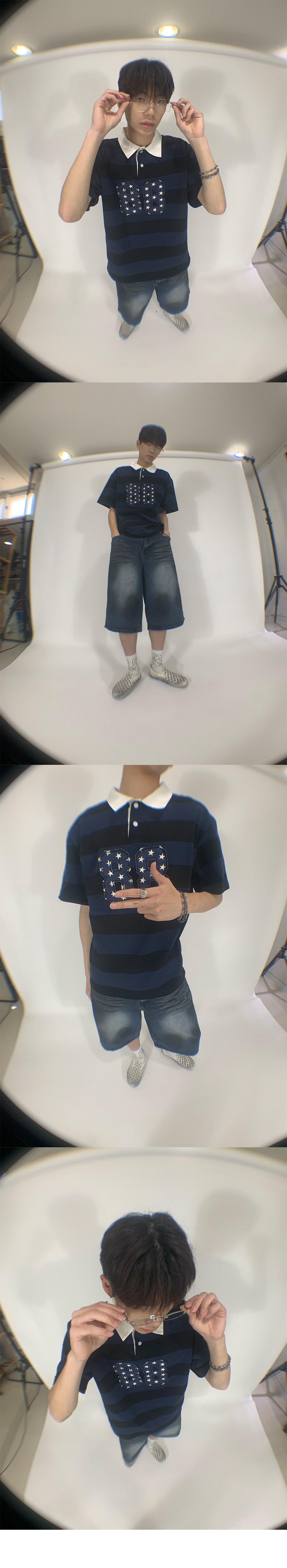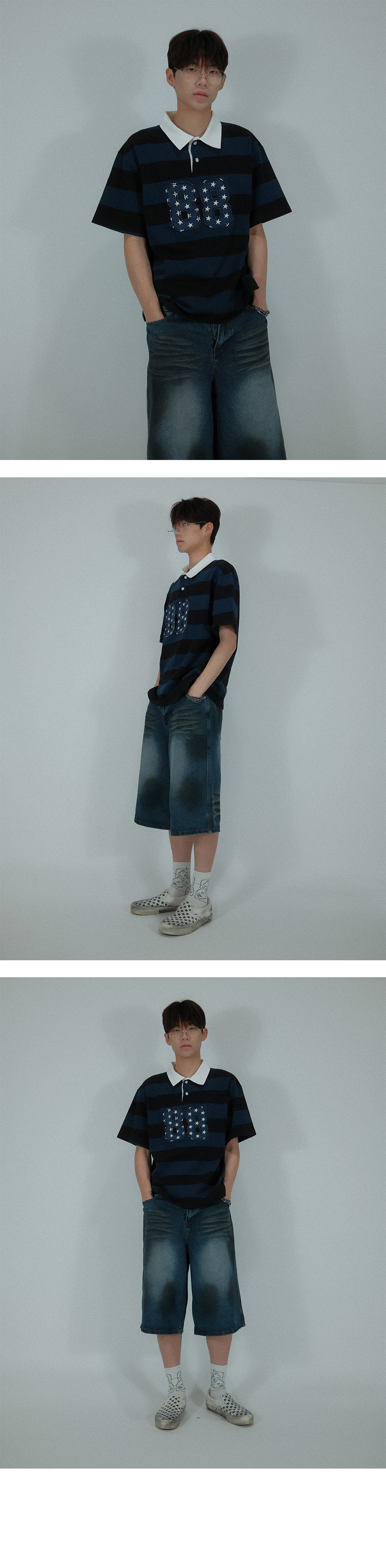 Stars & Stripes Pigment Rugby Shirt ((d/blue*black))