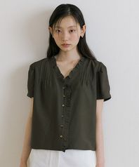 pintuck frill blouse-khaki brown