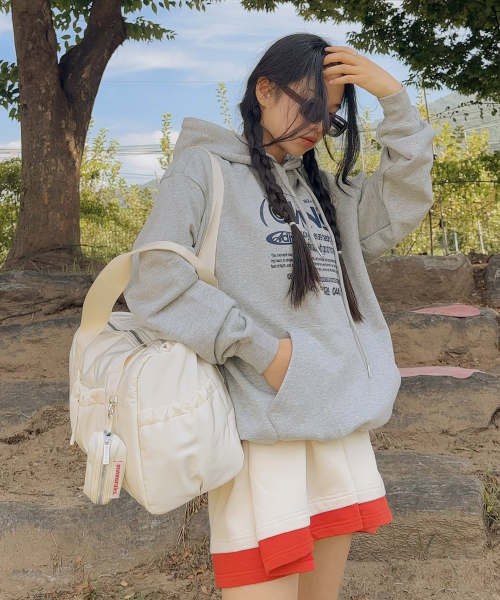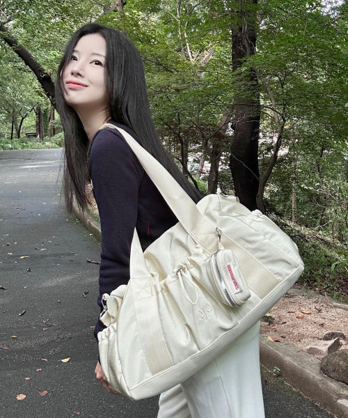 [파우치세트] glossy shoulder duffel bag_Light gray