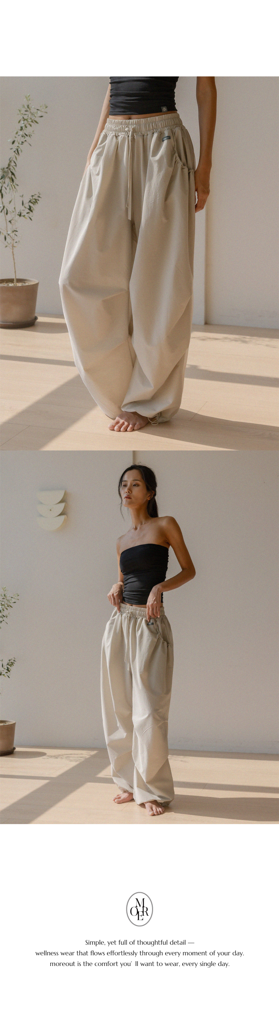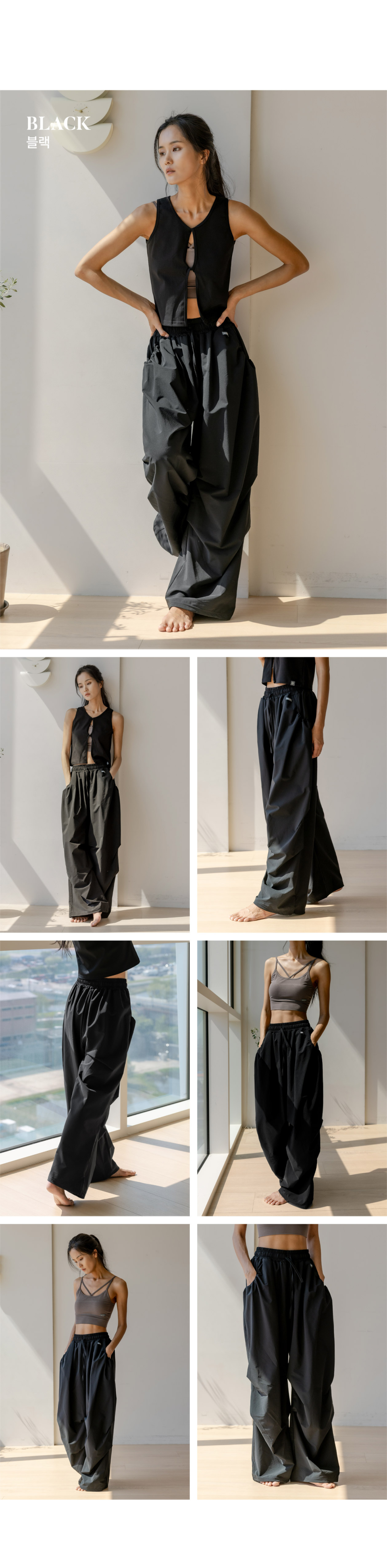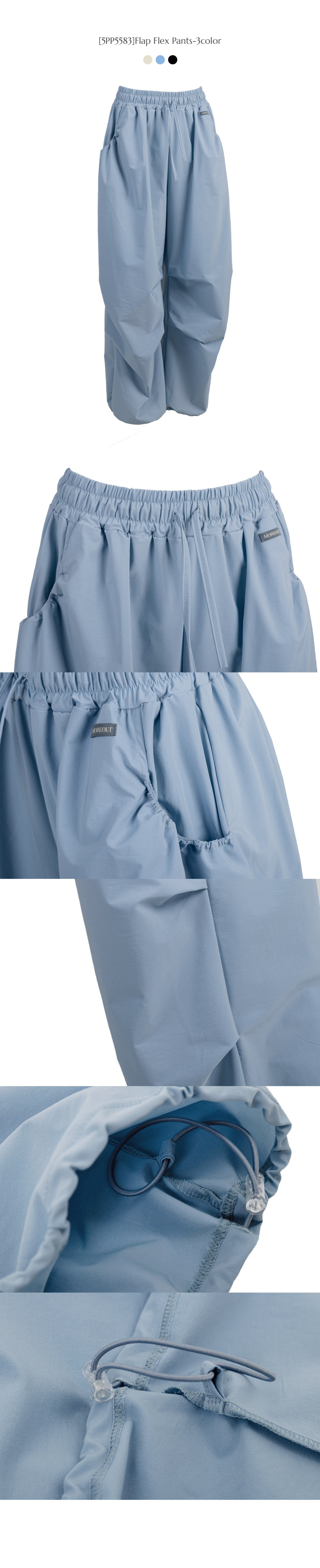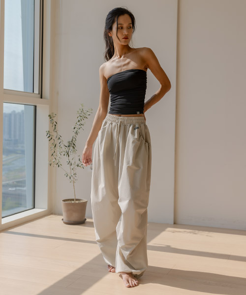 허리 전체 밴딩과 스트링으로 사이즈에 구애 없이 편하게 착용되며, 양쪽 플랩 포켓은 실용성과 스트릿한 감성을 동시에 더해줍니다.