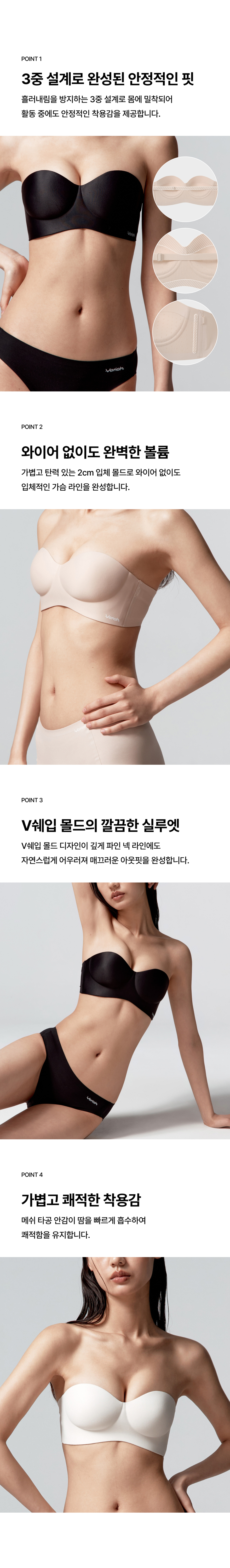 베리시(VERISH)는 'You are what you feel(좋은 느낌이, 좋은 나를 만든다)'라는 슬로건으로, 피부와 가장 가까운 언더웨어를 제안하는 브랜드입니다. 심리스 & 와이어리스 기술력과 부드러운 감촉으로, 보이는 것만큼 느끼는 것이 중요한 필링 웨어를 선보입니다.